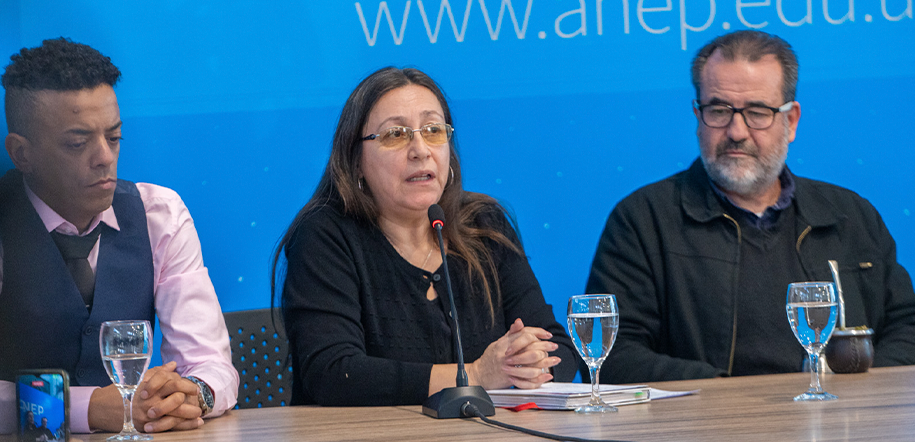 Autoridades de la ANEP y representantes de la Federación Nacional de Profesores de Educación Secundaria, Asociación de Trabajadores de Educación Secundaria y Asociación de Funcionarios de UTU, presentaron una declaración en respuesta a los episodios de amenazas que se sucedieron en diferentes centros educativos del país.