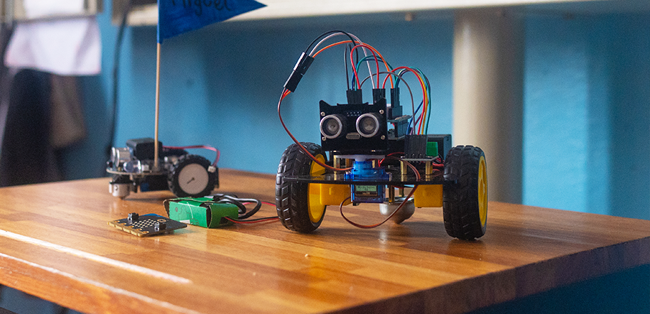 Actualmente, llevan a cabo uno de los proyectos finales en el taller de Informática y Tecnología, junto al docente Alexis Chaparro, donde los estudiantes lograron programar robots con placas micro:bit y arduino con funciones automáticas.