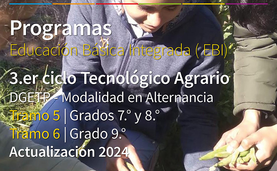 Luego los programas correspondientes al Plan de Educación Básica Integrada (EBI) organizados por componentes y espacios curriculares. En cada espacio se diferencian las unidades curriculares  para cada tramo, salvo en los casos que el EBI define una propuesta únicamente por grado.