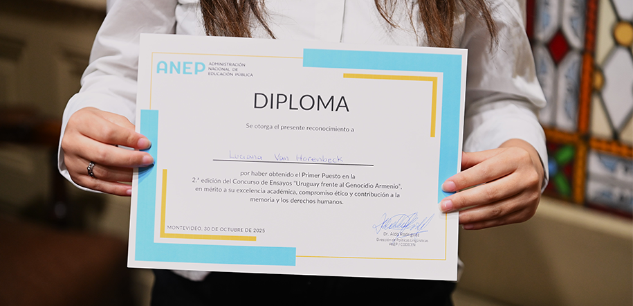 La joven de 17 años, estudiante del liceo de Playa Pascual, realizó este ensayo junto a su tutora y docente de Historia, Lucía Cruz, quienes recibieron como premio una invitación por parte de Unión General Armenia de Beneficencia (UGAB) y de Genocide Education Project, para presentar su trabajo en diversos centros educativos de Estados Unidos.