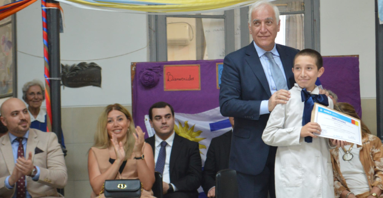 La Dirección de Políticas Lingüísticas de la ANEP, entregó diplomas de lengua Armenia a estudiantes de primaria de las escuelas 156 de Montevideo y 16 de Salto que lograron certificar nivel A1 del Marco Común Europeo de Referencias para las Lenguas.