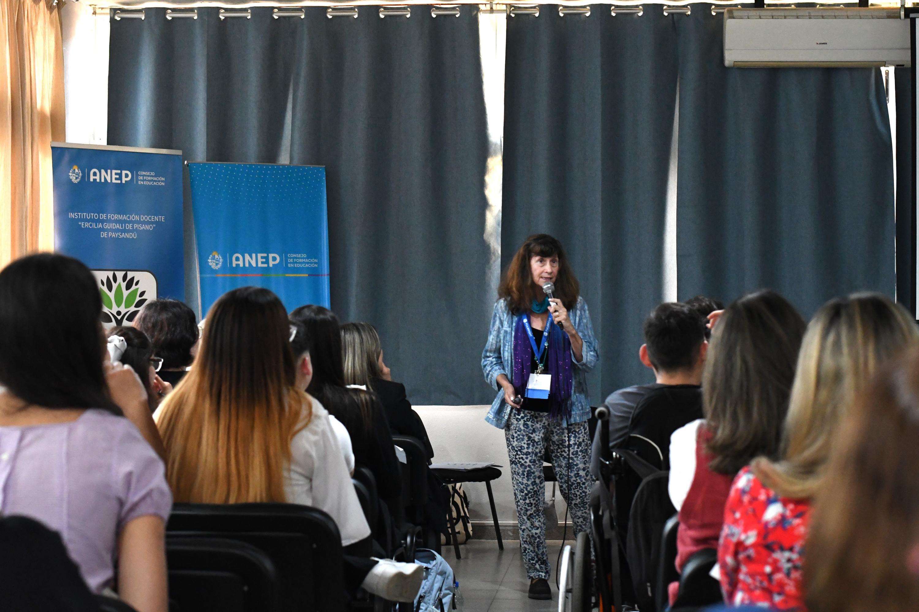 El Instituto de Formación Docente de Paysandú recibió a los expositores estadounidenses Barbara J. Hall y Justin Trullinger quienes revelaron claves para equilibrar el nivel de inglés en el aula a través de habilidades mixtas, la escritura y el juego.