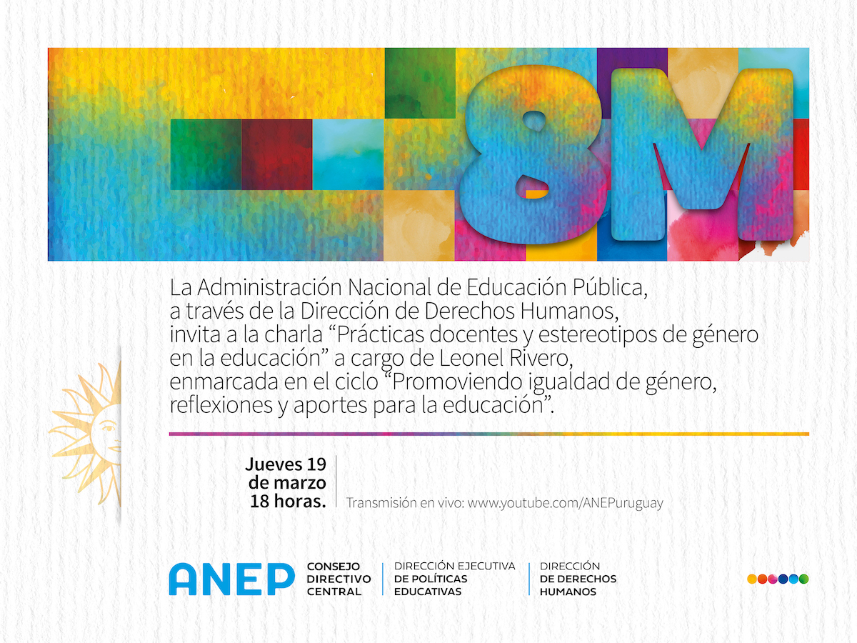 La Administración Nacional de Educación Pública, a través de la Dirección de Derechos Humanos, invita a la charla “Prácticas docentes y estereotipos de género en la educación” a cargo de Leonel Rivero, enmarcada en el ciclo “Promoviendo igualdad de género, reflexiones y aportes para la educación”.