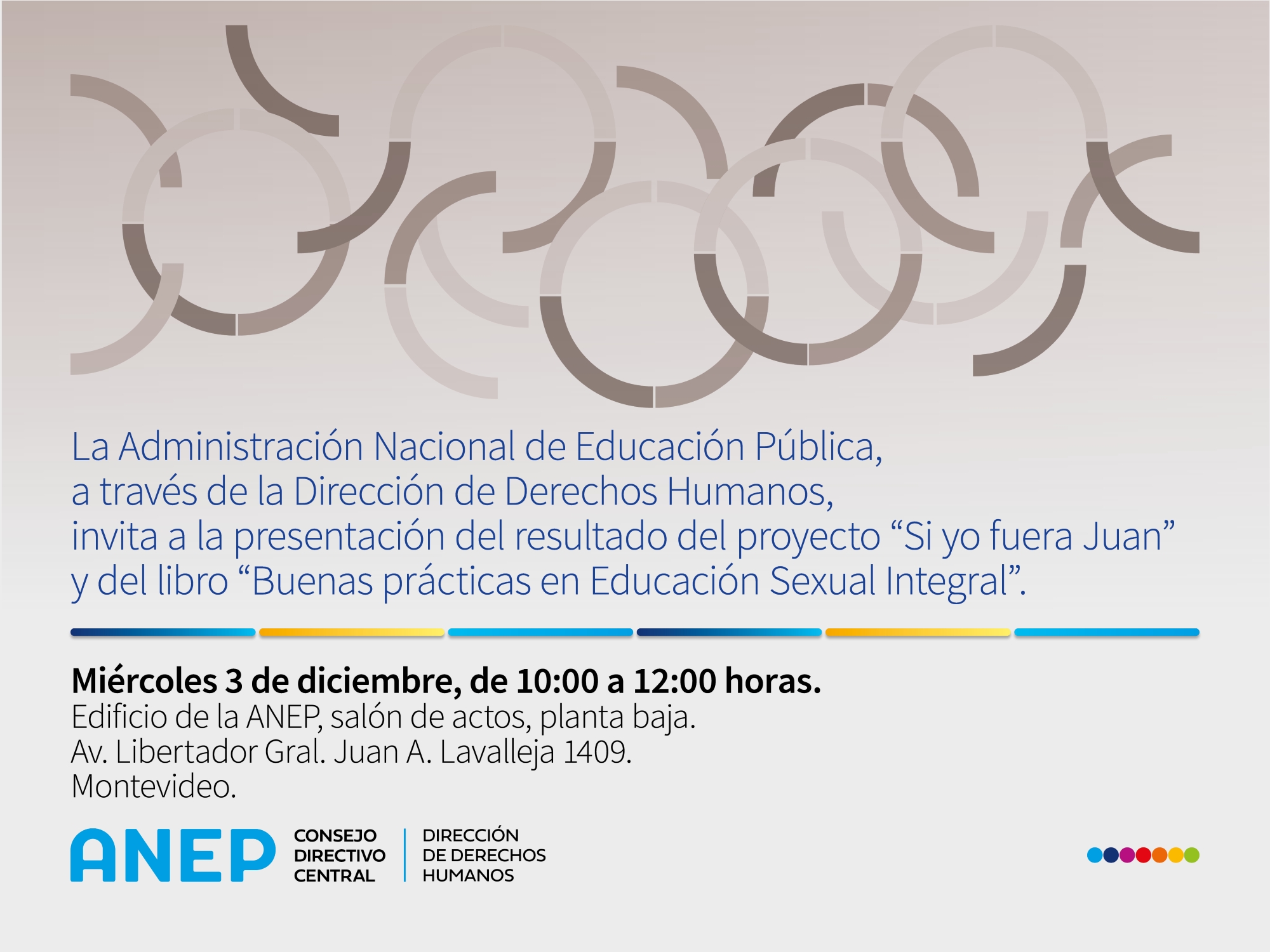 La Administración Nacional de Educación Pública a través de la Dirección de Derechos Humanos, invita a participar de la presentación del resultado del proyecto "Si yo fuera Juan" y del libro "Buenas prácticas en Educación Sexual Integral ".