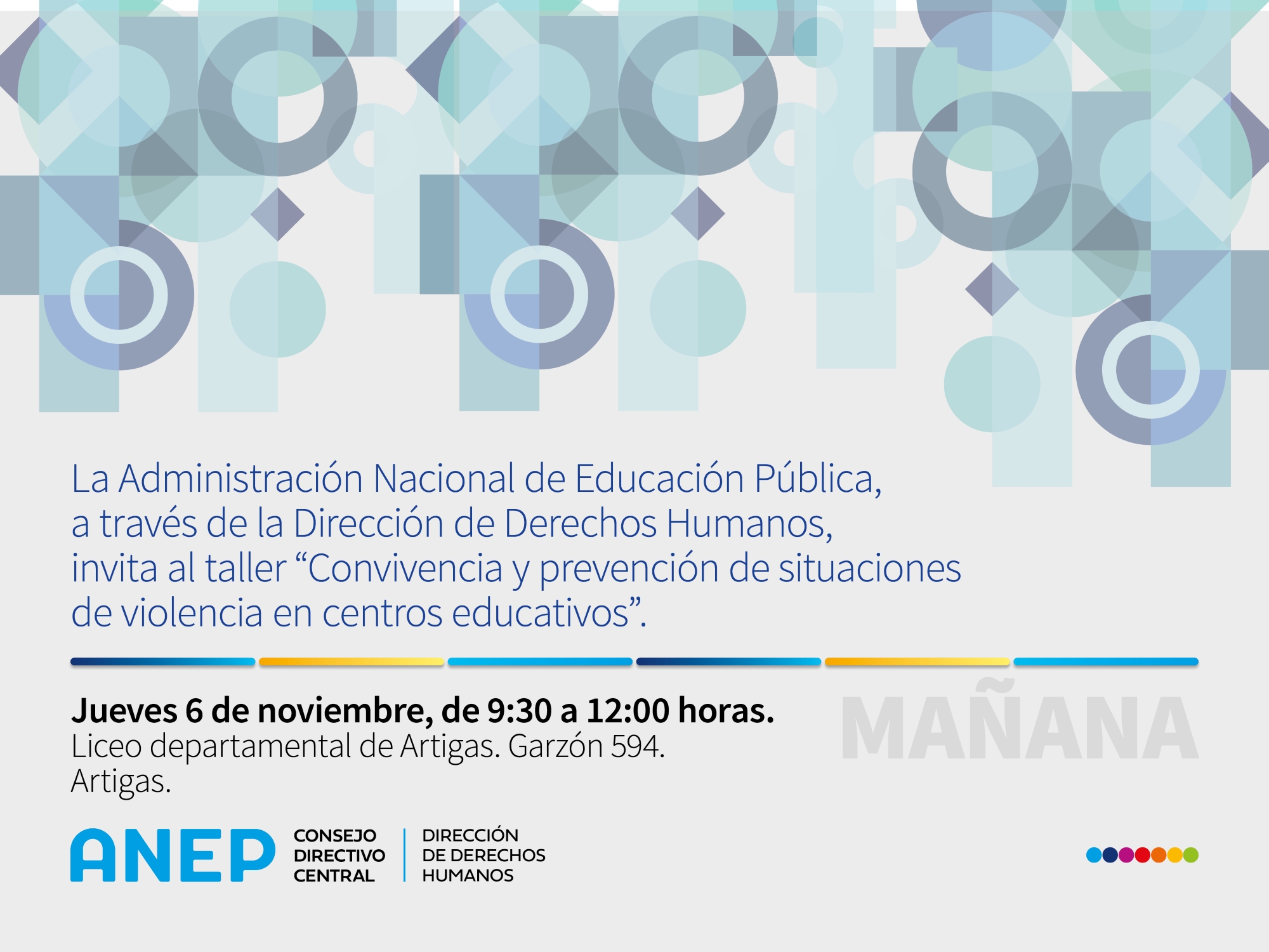 La Administración Nacional de Educación Pública, a través de la Direcció nde Derechos Humanos, invita al taller "Convivencia y prevención en situaciones de violencia en centros educativos".
