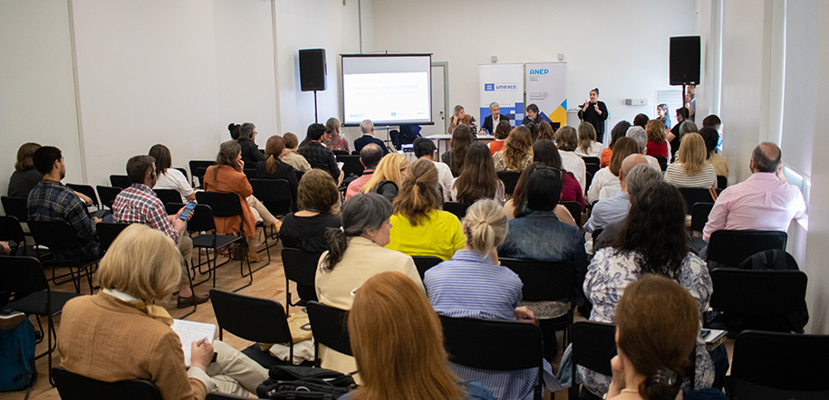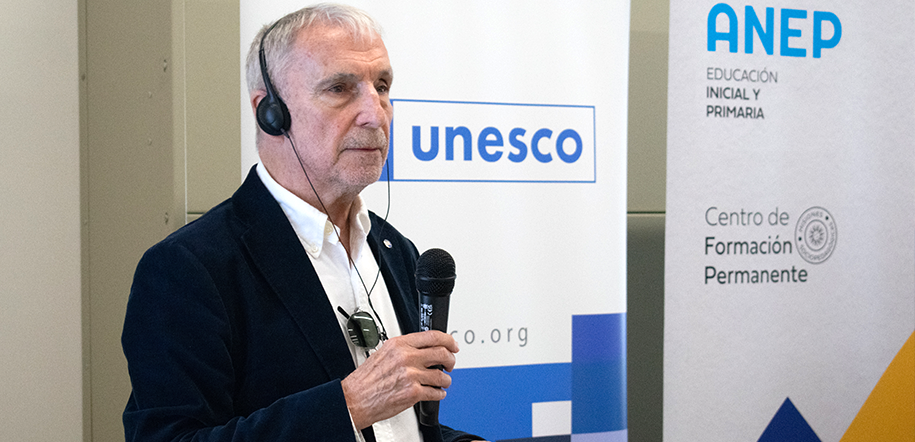 La conferencia fue dictada en el Centro de Formación Permanente de la Dirección General de Educación Inicial y Primaria (DGEIP), gracias al apoyo de la Oficina de UNESCO en Montevideo.