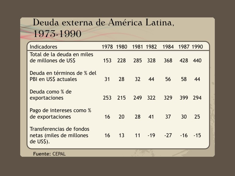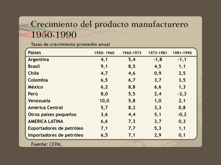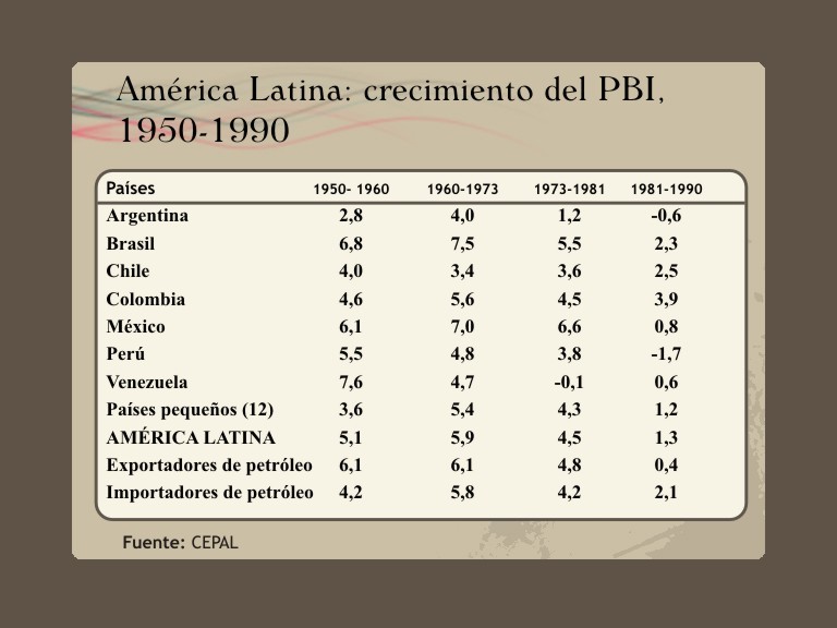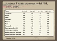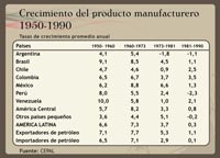 Tomados de: Rosemary Thorp, "Las economías latinoamericanas, 1950-1990" en Bethell, Leslie, Historia de América Latina, Tomo 11, Barcelona: Crítica, 1997. |