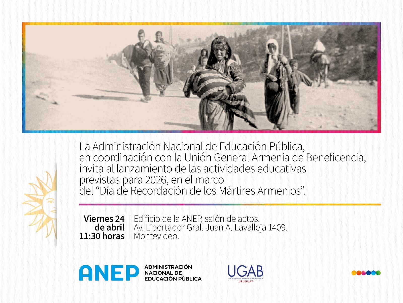 La Administración Nacional de Educación Pública en coordinación con la Unión General Armenia de Beneficencia invita al lanzamiento de las actividades educativas previstas para 2026, en el marco del "Día de Recordación de los Mártires Armenios".