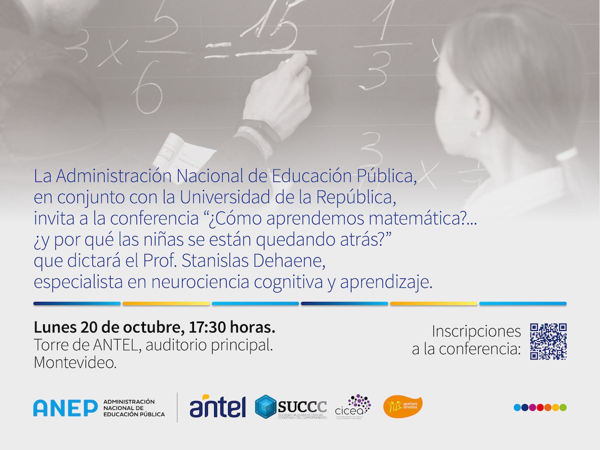 La Administración Nacional de Educación Pública, en conjunto con la Universidad de la República, invita a la conferencia "¿Cómo aprendemos matemática?... ¿y por qué las niñas se están quedando atrás?" que dictará el Prof. Stanislas Dehaene, especialista en neurociencia cognitiva y aprendizaje.