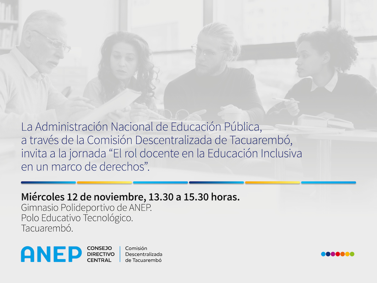 La Administración Nacional de Educación Pública, a través de la Comisión Descentralizada de Tacuarembó, invita a la jornada "El rol docente en la Educación Inclusiva en un marco de derechos".