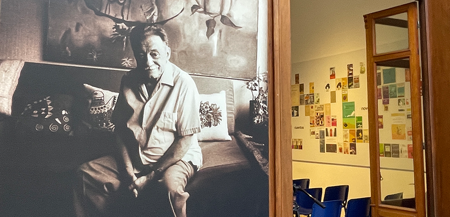 La donación se realizó en la biblioteca de la Fundación que perteneció al escritor. “Aquí hay 10.000 libros que fueron de Mario Benedetti. Las bibliotecas de madera que ven aquí son las que Benedetti tuvo en su casa y él mismo dejó claro cómo tenían que ser ordenados los libros. Dejó un fichero que indicaba la disposición en cada uno de los estantes y en cada una de las bibliotecas que están numeradas. Aquí están colocados de la misma manera en que él los tenía en su casa”.