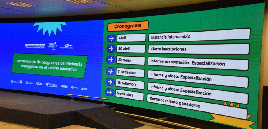 Del mismo modo y hasta el 30 de abril será para el concurso de Eficiencia Energética, organizado por el Ministerio de Industria, Energía y Minería (MIEM), en coordinación con la Administración Nacional de Educación Pública (ANEP) que promueve el desarrollo de proyectos sostenibles, con el fin de reconocer y ejecutar soluciones energéticas alternativas desde diferentes áreas y miradas,