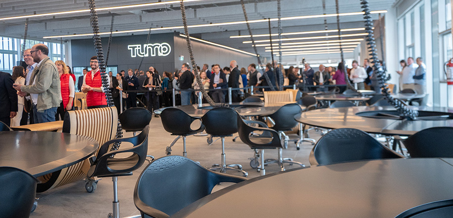 El centro es una iniciativa de la Corporación América Airports, Aeropuertos Uruguay y Ceibal, y cuenta con el apoyo de la Intendencia de Canelones y de Google. TUMO está ubicado dentro de las instalaciones del Aeropuerto Internacional de Carrasco.