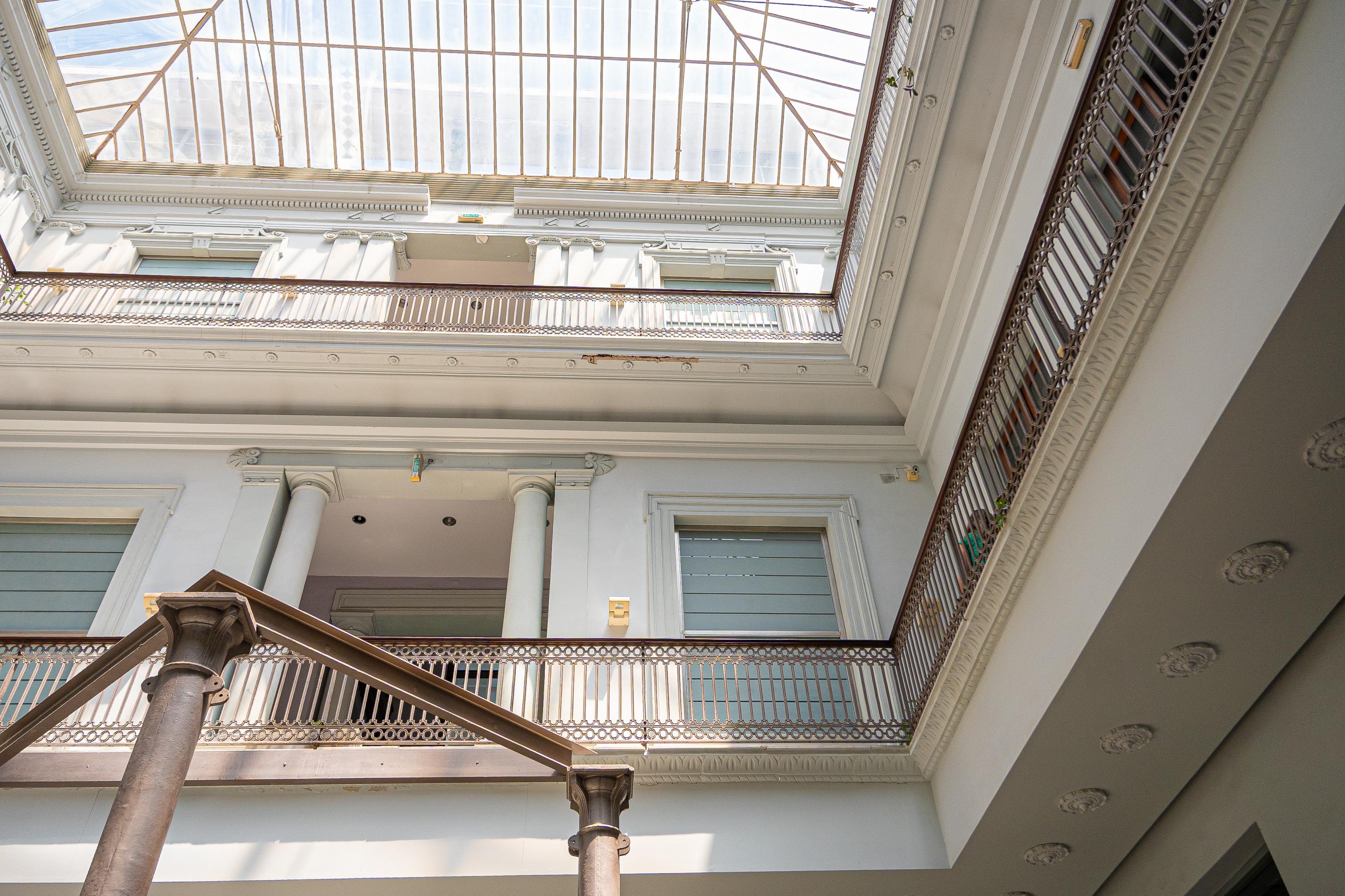 Antiguamente, en este edificio ubicado en la Peatonal Sarandí en la Ciudad Vieja, funcionó la antigua Biblioteca y Museo Nacional (1867), obra del arquitecto británico Thomas Havers. También fue la primera sede de la Administración de Correos y oficinas de Antel.